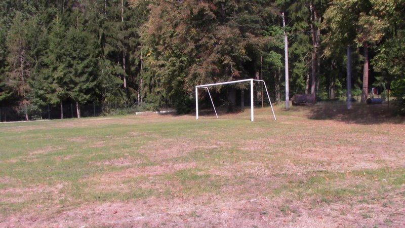 Na fotbalové hřiště chodíme na některé hodiny tělocviku. Je na druhé straně obce, než je škola, ale to nevadí. Jsme tam za chviličku.