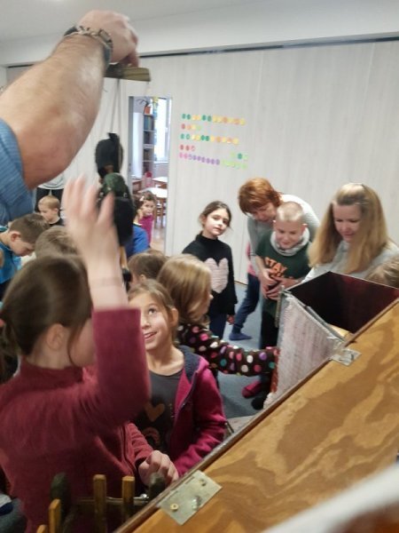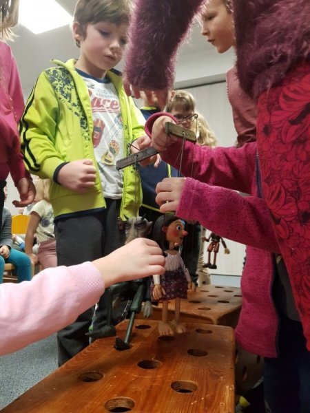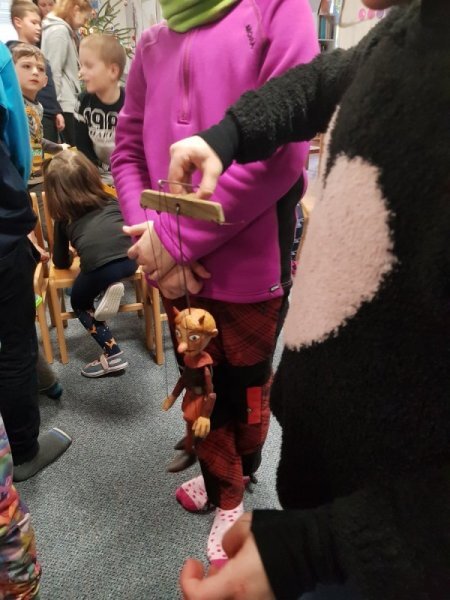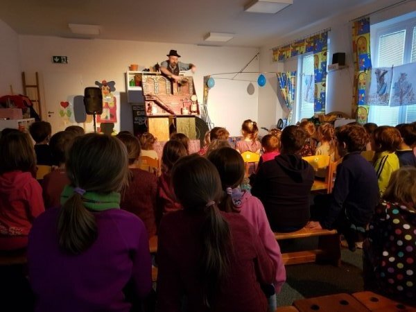 V úterý se mladší děti (1.-3. ročník) přidaly ke školkovým dětem a zhlédly pohádku o Perníkové chaloupce.