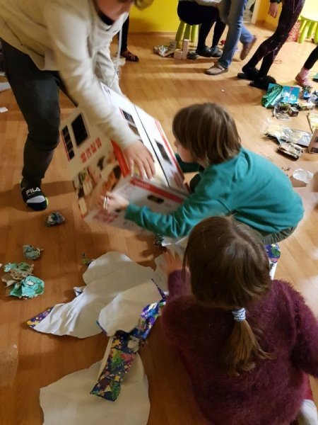 Po čtvrté hodině začal náš školní Štědrý večer. Zahájili jsme ho vycházkou ven, a když jsme se vrátili do tepla, čekala nás slavnostní večeře. A po večeři stromeček a dárky... A po dárcích promítání vánočních pohádek a spíš dlouhá než tichá noc.