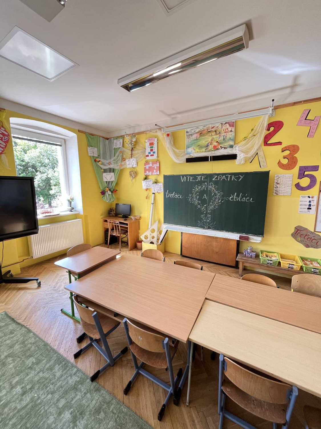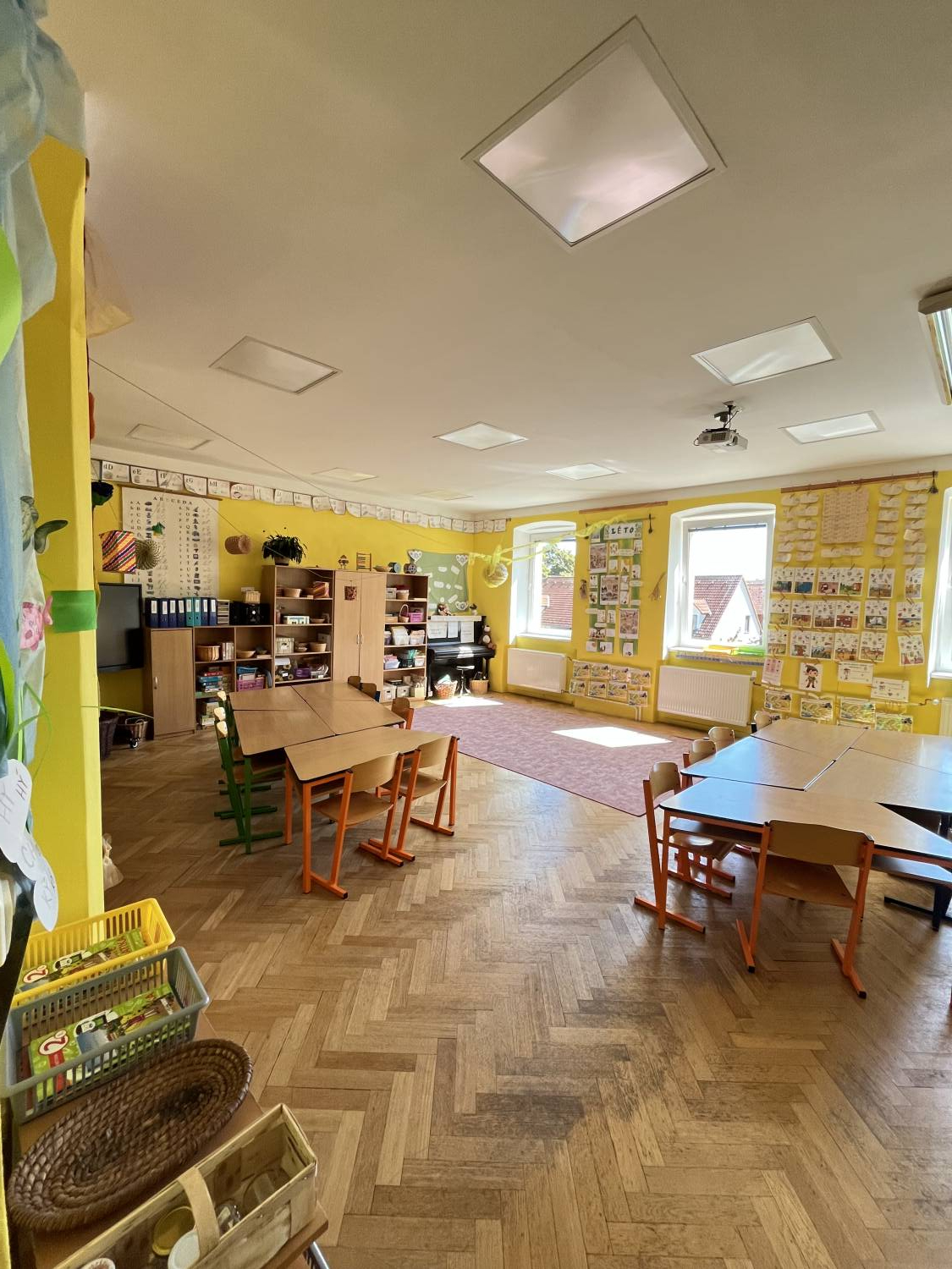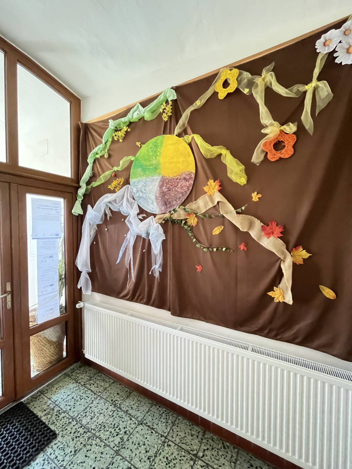 Letošní výzdoba se ve škole nese v duchu jarním, podzimním, zimním i letním..