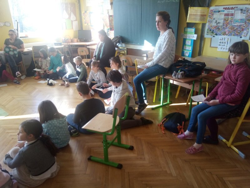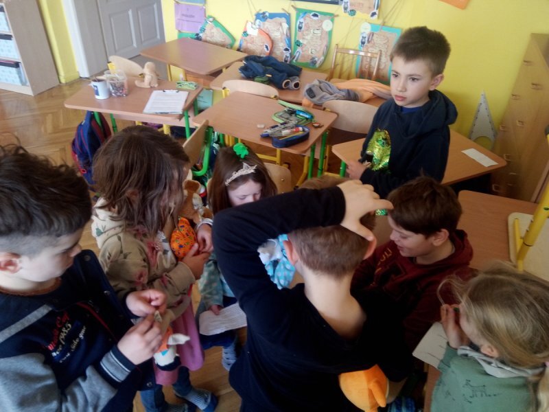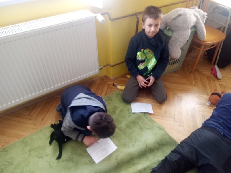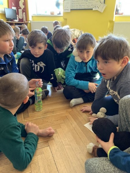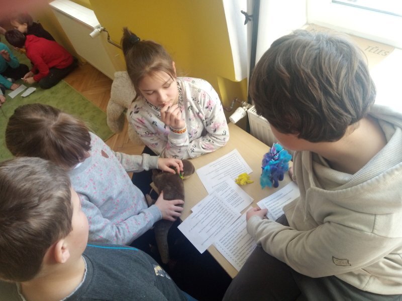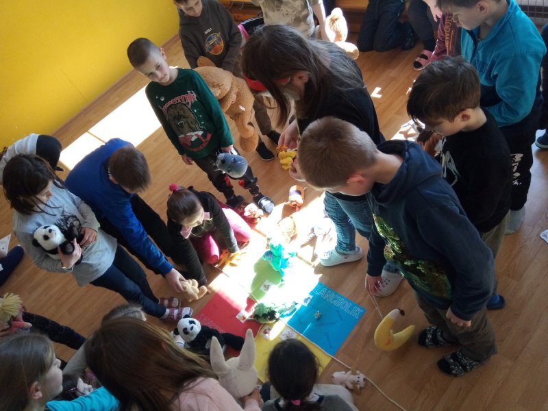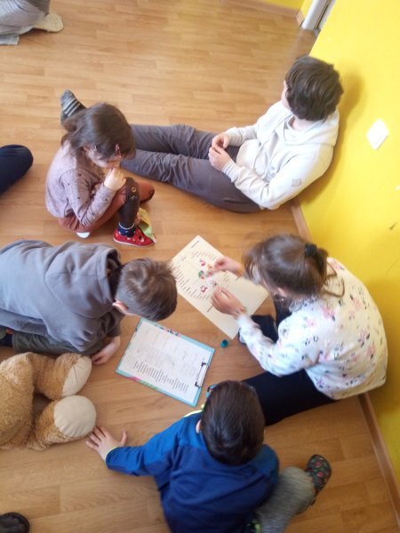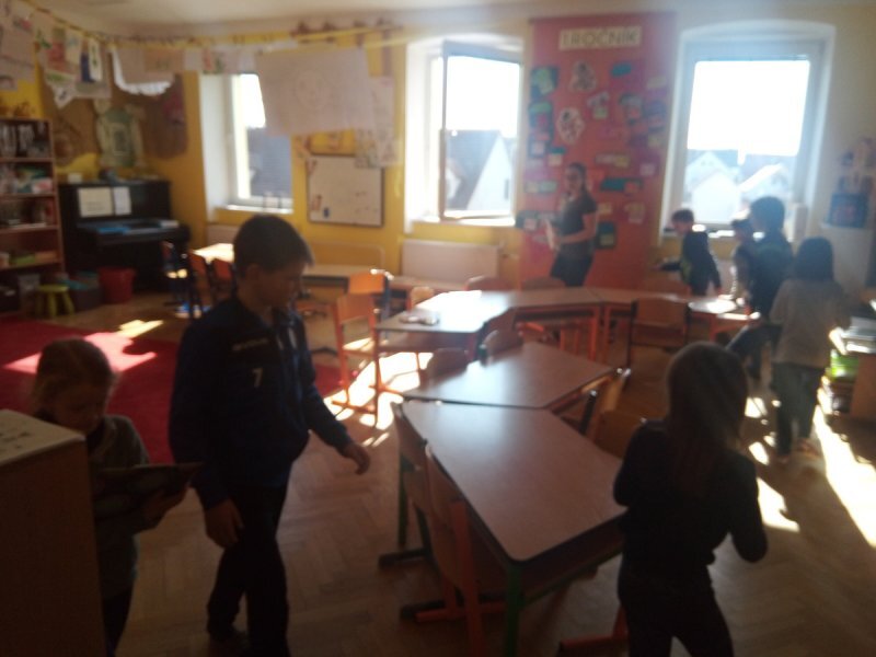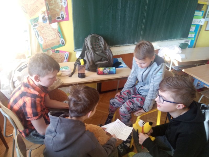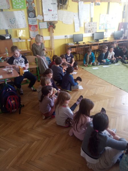 Potom jsme se šli seznámit s jednotlivými zvířátky. Každé zvířátko má nějaké výrazné vlasnosti, naším úkolem bylo je co nejlépe popsat. Na závěr jsme si pak ukázalo, že tyto vlastnosti tvoří prostor lidských charakterů, po které používáme slova jako sangvinik, cholerik, melancholik a flegmatik. Do tohoto prostoru jsme umístili zvířátka ze Stokorcového lesa a na závěr i našeho plyšáčka - který zastupoval nás samotné, jak se vidíme.