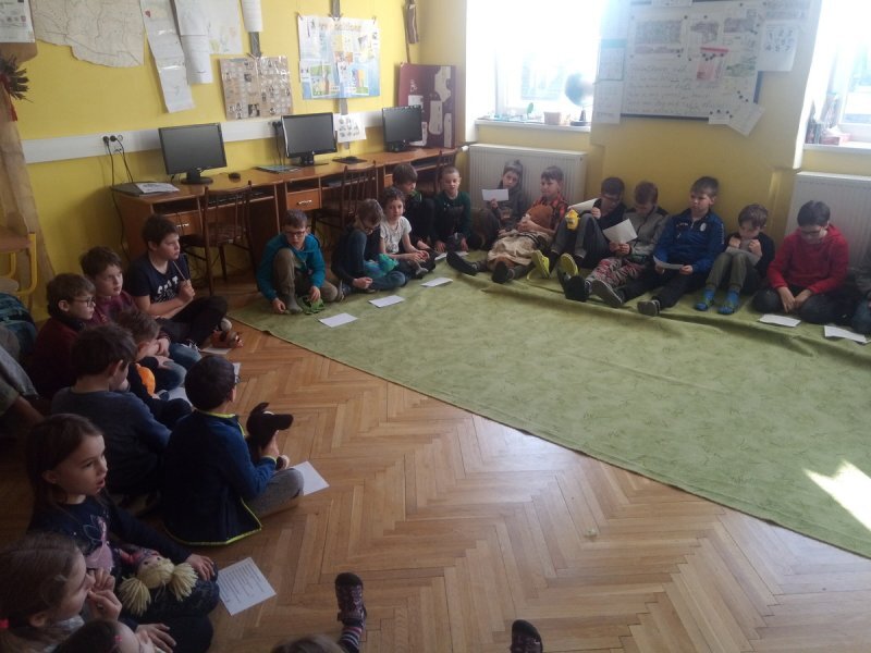 Do stokorcového lesa jsme jeli vlakem a ve skupině jsme museli řešit nesnadný úkol - do jakého kupé si sednout, když v každém už někdo sedí. Kdo nám bude vadit nejméně? Argumentace, hledání kompromisu, tolarance názoru, se kterým nesouhlasím, ale dokážu ho respektovat...