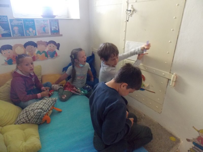 Abychom nebyli ochuzeni o příběh, který jsme si nakonec nemohli přečíst, zkusili jsme vytvořit naše vlastní mikropříběhy z ilustrací obyčejných situací v životě. Děti se ve skupinách dohodly, co se podle nich na obrázcích odehrává a pomocí komiksových bublin vdechly postavám (i věcem) v obrázcích děj.